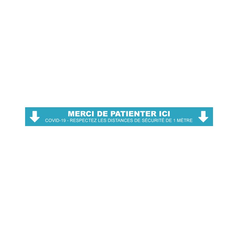 Sticker bande de distance de sécurité "Merci de patienter ici".